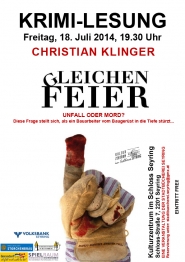 Christian KLINGER liest aus seinem Krimiroman "Gleichenfeier", künstlerische Gestaltung mit allegorischen Bildern von Martin GUBO aus der Outdoor-Galerie SPIELRAUM, begleitet mit einer Schnapsverkostung von DER SCHNAPSBRENNER - Gerald Mayerhofer und es gibt feines Bier, gesponsert von Storchenbräu in Untersiebenbrunn und aus dem Burgenland das Kobersdorfer Schlossbräu.